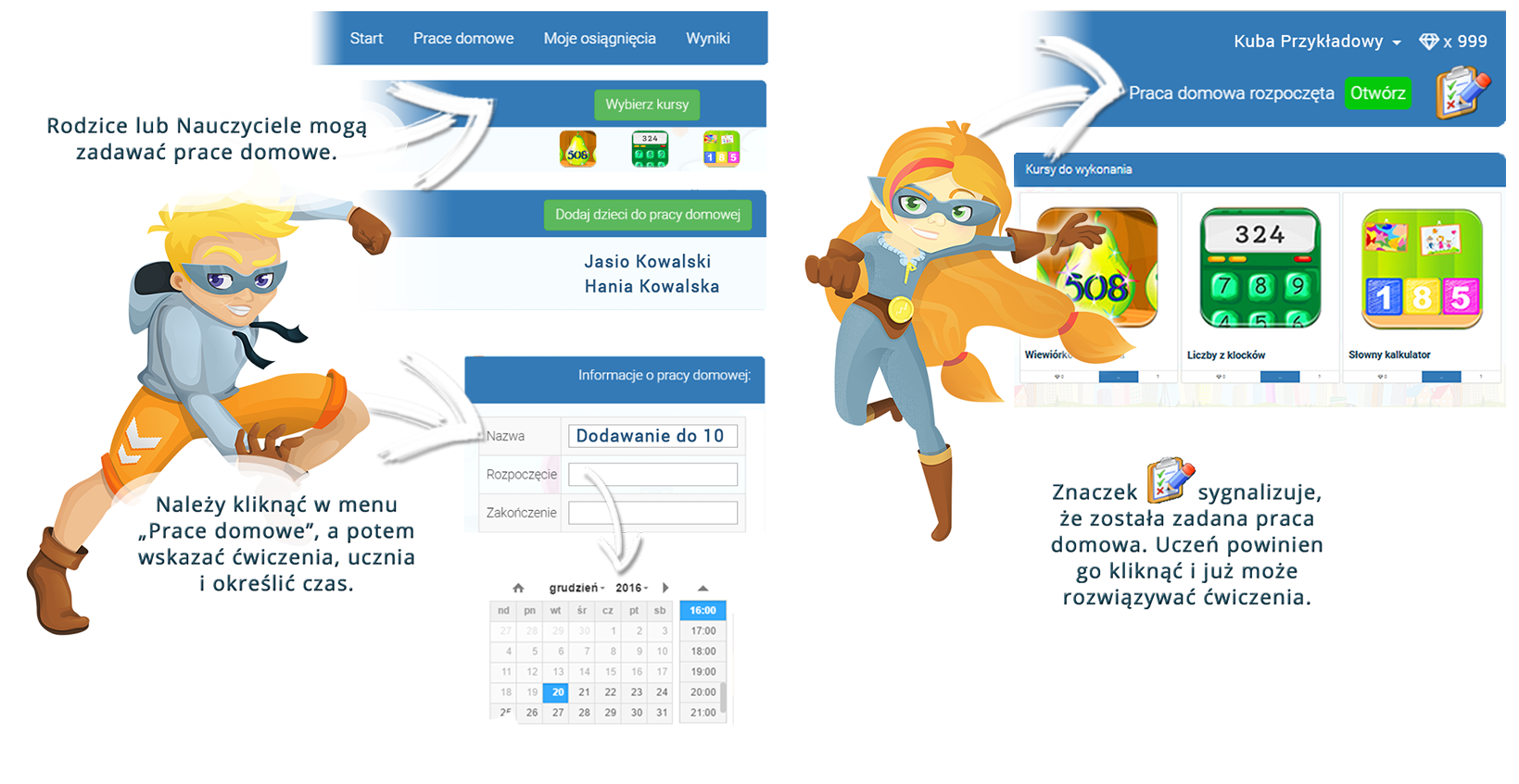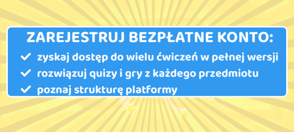 Na platformie czeka ponad 1500 interaktywnych ćwiczeń, gier i quizów edukacyjnych – wszystkie dostępne online. Zadania obejmują język polski, matematykę, język angielski i przyrodę, a treści są dostosowane do poziomu klas 1-3 edukacji wczesnoszkolnej.